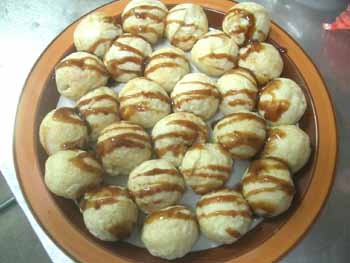 | 水屋敷の冬メニューとして 「タコなしタコ焼:丸天・水屋敷風」 を考え中! |