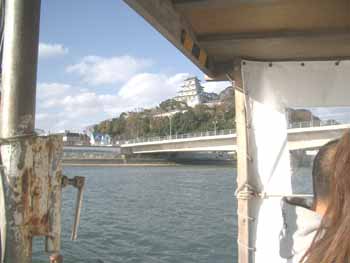 橋を渡って定期便航路の船着場へ