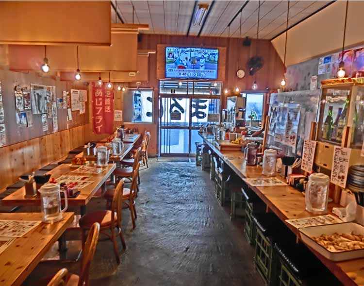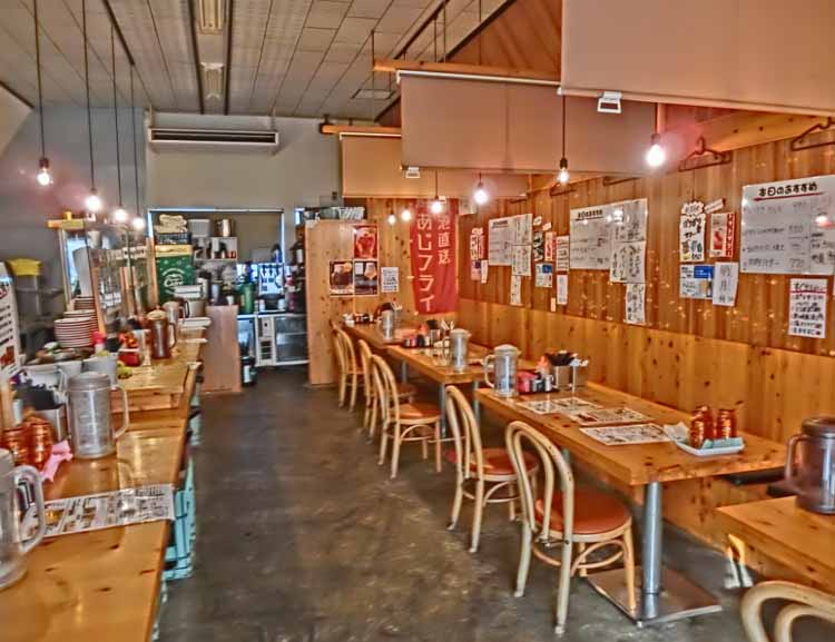 | 「島原市役所」海側の線路を渡ったスグ。店横・前に、P8-9台ほどアリ。 カウンター×10席、4人テーブル×2席、6人テーブル×2席ほど。 卓上に、セルフのお冷、自家製ラー油、辛子高菜、にんにくチップ、紅ショウガなどもアリ。 お昼は、券売機システムで「豚骨ラーメン」「醤油豚骨ラーメン」 「餃子」「明太ご飯」「牛すじご飯」「唐揚」セットなど。「日替わり麺定食」がオススメ! 夜は、メニュー豊富な居酒屋! 定番メニュー(20種類ほど)からのオススメは… ◎ローストビーフ ◎シーザーサラダ ◎ギョウザ ◎あじフライ ◎若鶏レアかつ ◎牛スジ 等など 日替りメニュー(10種類ほど)もアリ… ◎アジ/タイ/ヒラスの刺身など、生モノもアリ! この日替メニューも、楽しみの一つなんデス。(^o^) 氷の代わりに凍ったレモンorライムを入れた ◎氷菓サワー ◎追いサワー 等も、オススメ! 呑みの〆には…夜のみの…◎味噌ラーメン! 炒めた挽肉モヤシが熱々!平打ち太麺!美味い! おつまみメニューも、美味しくてボリュームあって安い! 日本酒もイロイロあって、居酒屋使いとしても充分魅力アル店だと思います。^^ |