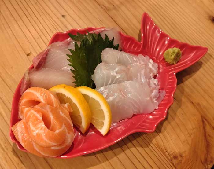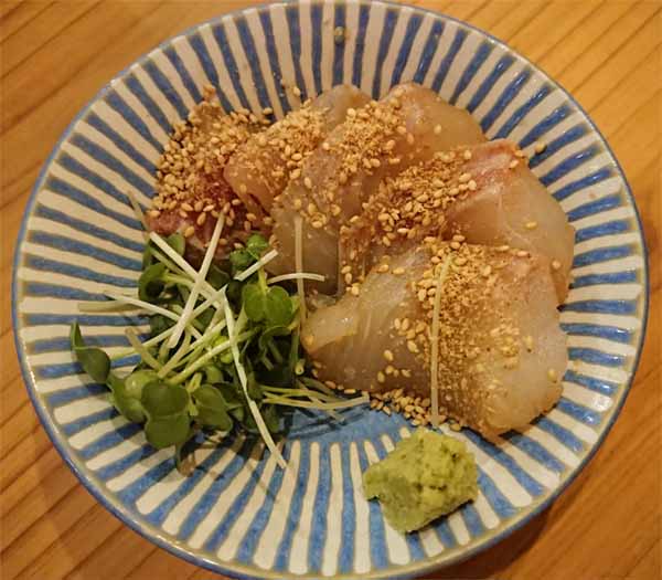 | 刺身盛:990円 タイゴマ刺:550円 | |