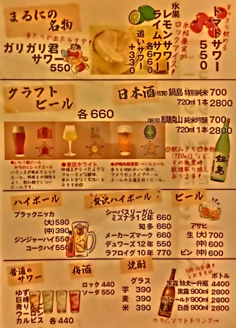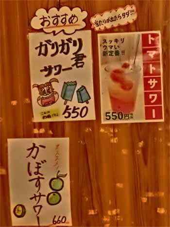 | 生ビール600円 トマトサワー:550円 ガリガリ君サワー:550円 | |