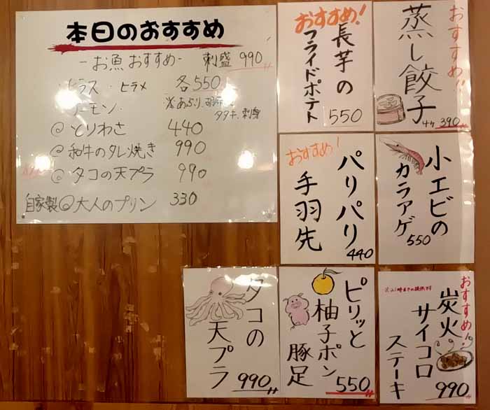 | 夜のお品書き 17:30〜23:30ころ |