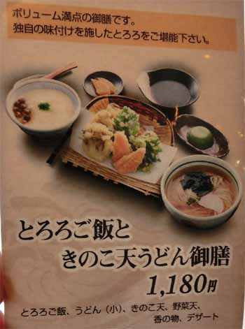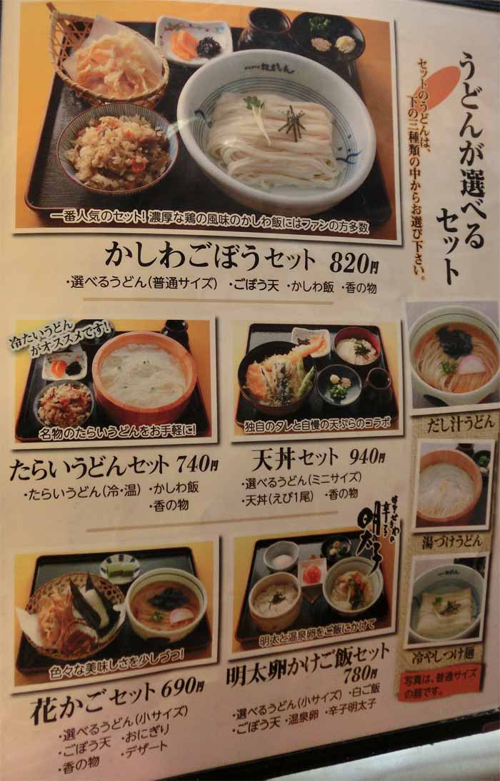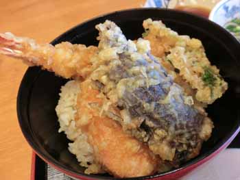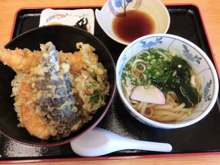 | 天丼セット:940円 うどん、天丼、香の物 |