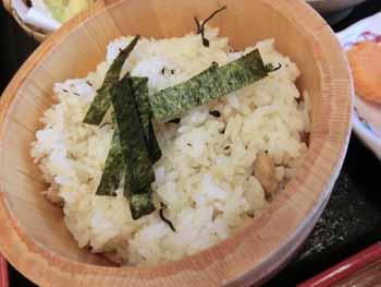 | かしわごぼうセット:820円 うどん、かしわ飯、ごぼう天、香の物 |