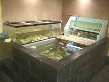 | 島原外港近くの海岸にある「いけす料理いけだ」さん。 国道沿いの場所で12年されてましたが、2年前に今の場所に移られました。 九十九ホテルの海岸沿いの細道にあります。 駐車場も広くて10台以上は大丈夫そうです。 (飲酒運転は厳禁) キレイな和風づくりの建物で、入ってスグに「いけす」が有。 右側がカウンター席で、6席+5席 奥が個室座敷で、6人個室×5部屋(つなげて大部屋も可) 基本的に、この店は魚の刺身がメインですネ。 ◎がんば(ふぐ):1300円〜 ◎あじ:1000円〜 ◎たこ:600円 ◎いか:600円 ◎天ぷら:900円 ◎刺身定食:1200円 その時々の旬の魚もありますので、いけすや黒板メニューも見てみてください。^^ |