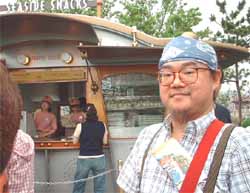 | 歩いてアメリカンウォーターフロントヘ 途中、「Seaside Snaks」にて、人気のギョウザドッグをGET! |
