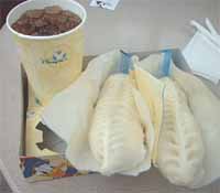 | これが噂の「ギョウザドッグ」! 超人気で、並んで買います。 1個380円!美味いですヨ!^^ |