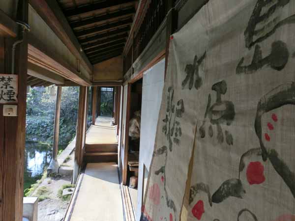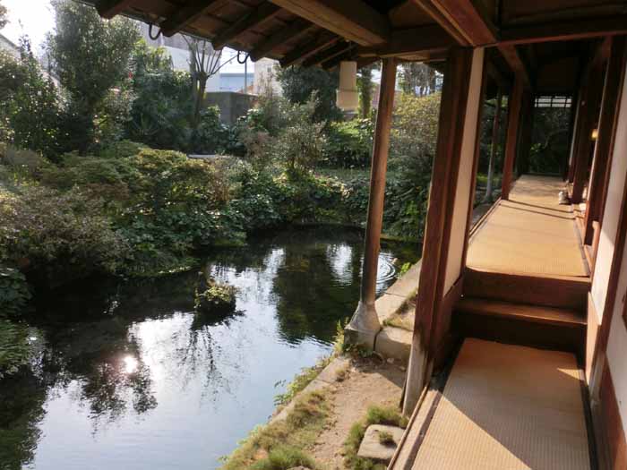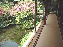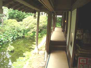 | 縁側を進みながら見える池の風景 | 縁側を進みます |