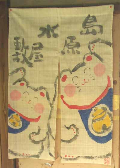 | 招き猫絵師:布施渥さん作ののれんです | |
