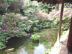 | 門から中へ進むと、視野が広がり、 池と屋敷が見えてきます |